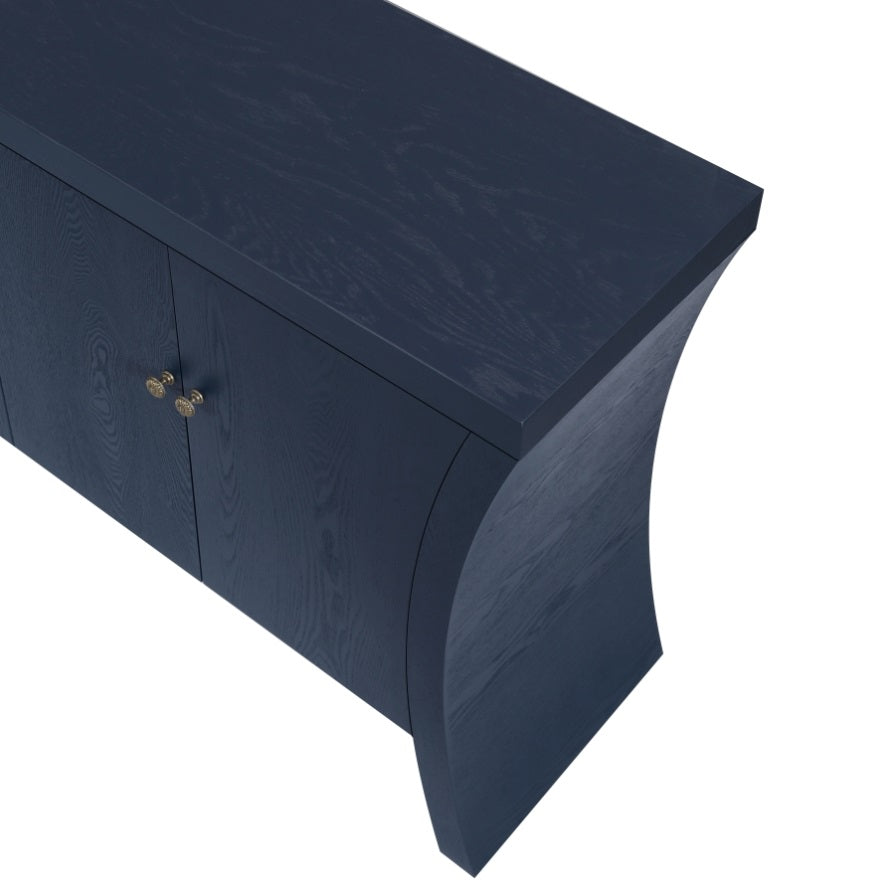 Refined Industrial 4-Door Credenza with Wooden Arc Legs & Bronze Clasps Advanced Storage Design, W1445P256460