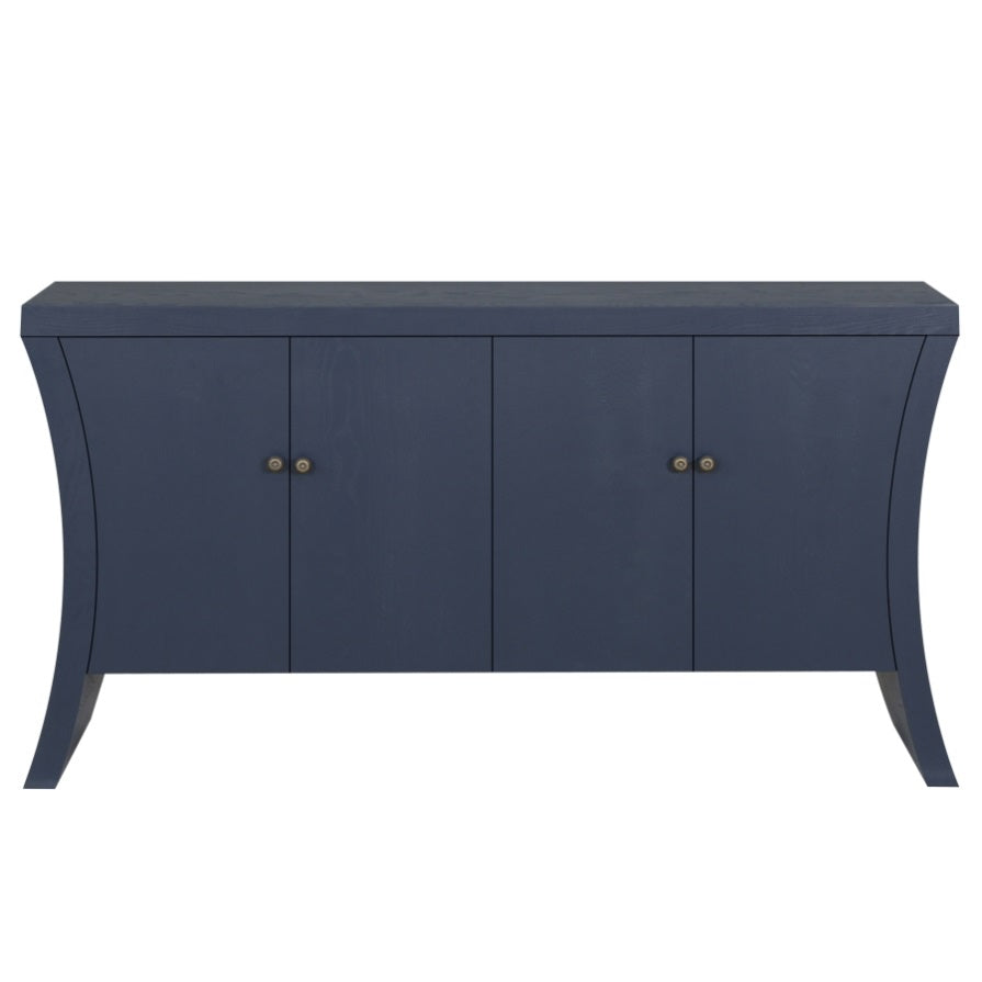 Elevate your space with this Refined Industrial 4-Door Wooden Credenza, blending advanced functionality and timeless craftsmanship. The sturdy, thickened MDF body ensures heavyweight durability, supported by elegantly curved solid wood legs that add retro-modern flair while protecting floors. Four spacious compartments feature shelves for versatile storage—perfect for organizing clothes, books, or decor. Distressed bronze-tone metal clasps serve as both handles and striking industrial accents, contrasting beautifully with the wooden frame. Designed for modern living, this credenza transitions seamlessly as an entryway console, living room cabinet, or bedroom storage unit. Its neutral, rugged aesthetic complements contemporary, rustic, or loft-style interiors, offering a statement piece that marries practicality with refined design. Easy to assemble and built to last.