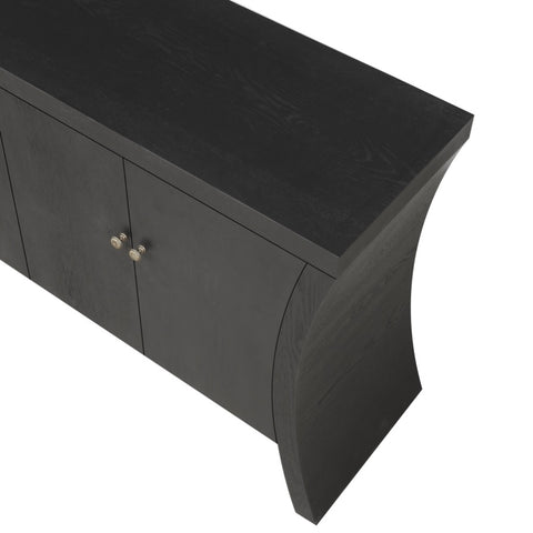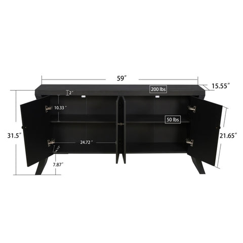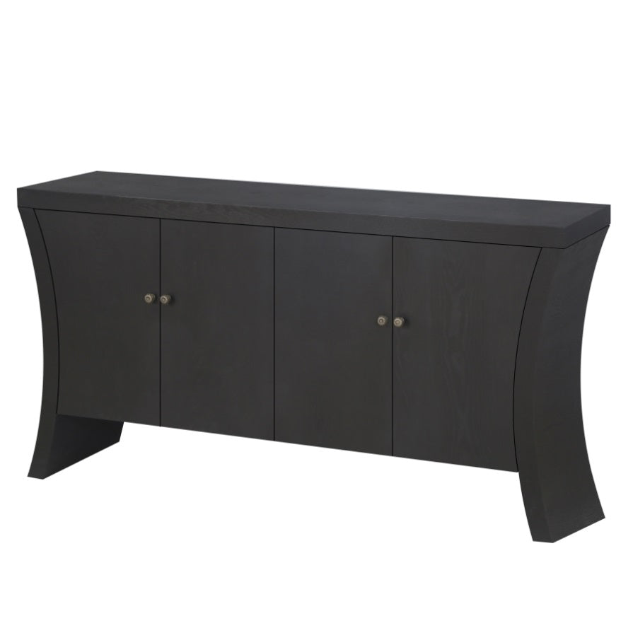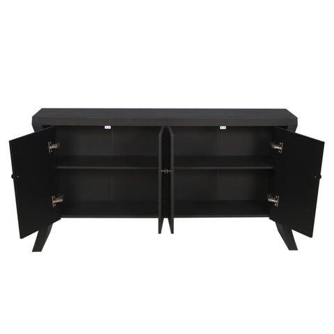 Refined Industrial 4-Door Credenza with Wooden Arc Legs & Bronze Clasps Advanced Storage Design, W1445P256466