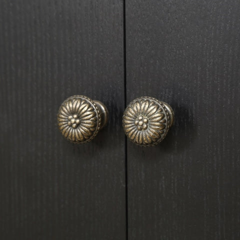 Elevate your space with this Refined Industrial 4-Door Wooden Credenza, blending advanced functionality and timeless craftsmanship. The sturdy, thickened MDF body ensures heavyweight durability, supported by elegantly curved solid wood legs that add retro-modern flair while protecting floors. Four spacious compartments feature shelves for versatile storage—perfect for organizing clothes, books, or decor. Distressed bronze-tone metal clasps serve as both handles and striking industrial accents, contrasting beautifully with the wooden frame. Designed for modern living, this credenza transitions seamlessly as an entryway console, living room cabinet, or bedroom storage unit. Its neutral, rugged aesthetic complements contemporary, rustic, or loft-style interiors, offering a statement piece that marries practicality with refined design. Easy to assemble and built to last.