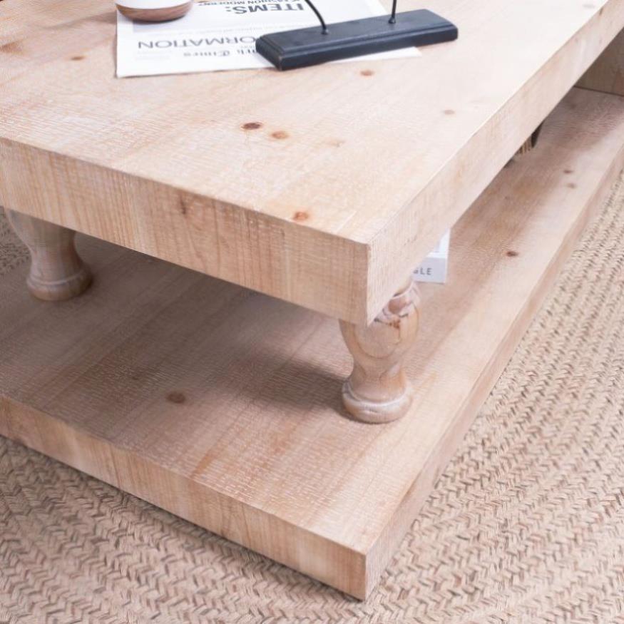 Elevate your living room with this solid wood coffee table, blending rustic charm and modern farmhouse style. Crafted from durable natural wood, this 47.2-inch rectangular coffee table features a clean silhouette enhanced by elegant turned legs on one side, adding a unique design element that sets it apart.