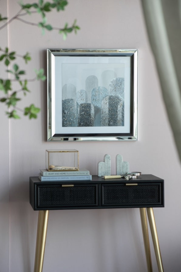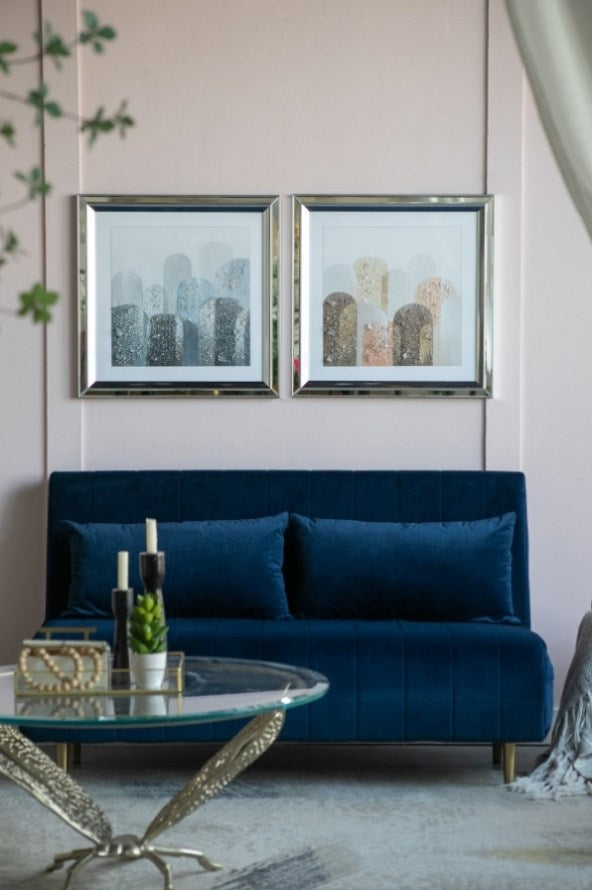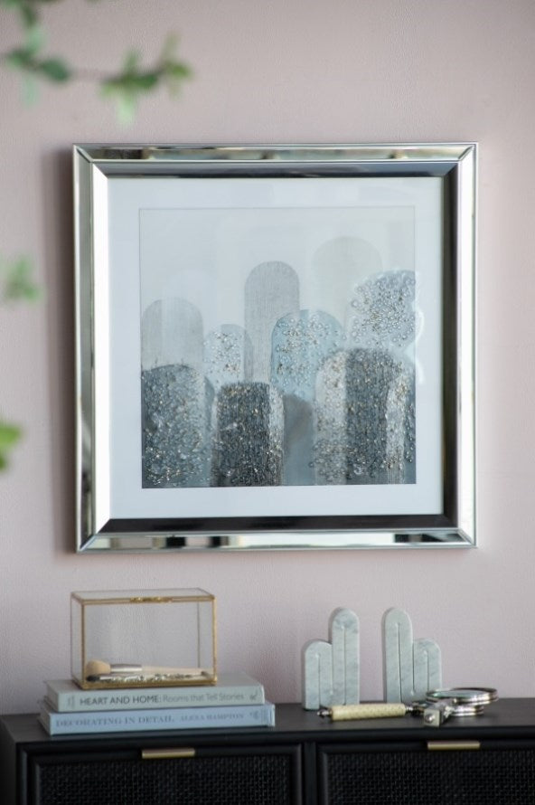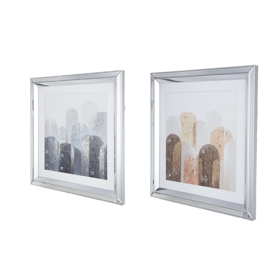 Framed in a mirror edge and offering clean lines in the art, seen in contemporary designs, display this set of Kaiden artwork in your designs.