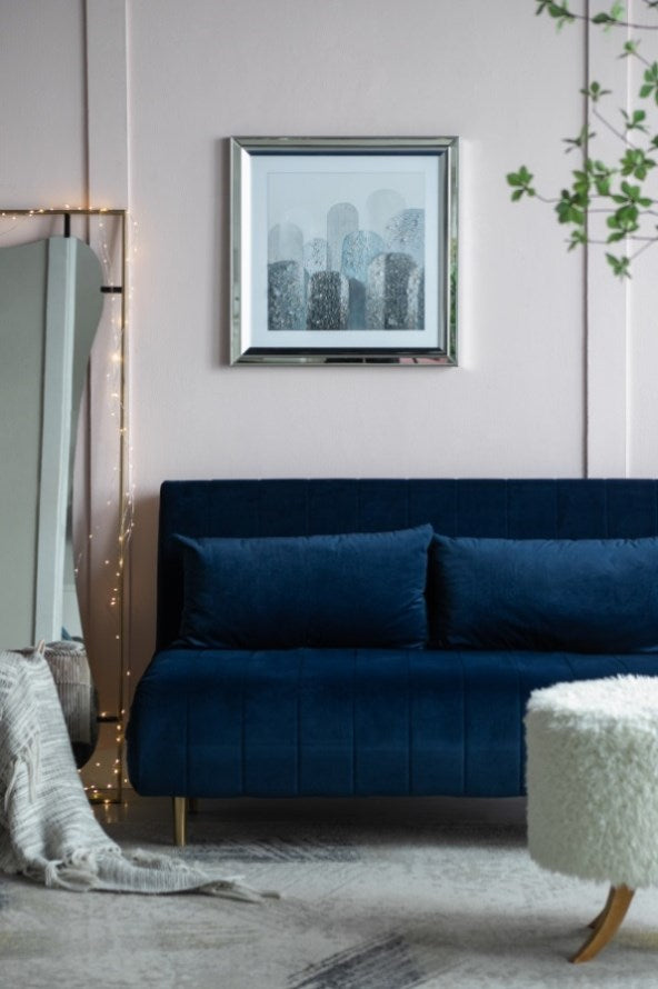It’s like night and day with the set of two Kaiden Crystal Wall Art. The 23.6″ wall art depicts an contemporary version of night and day, using cool shades of blues on one art work, while the opposite artwork shows us the warmth of day with shades of orange. Framed in a mirror edge and offering clean lines in the art, seen in contemporary designs, display this set of Kaiden artwork in your designs.