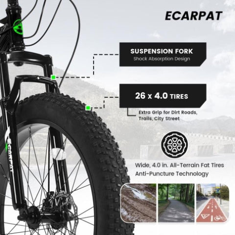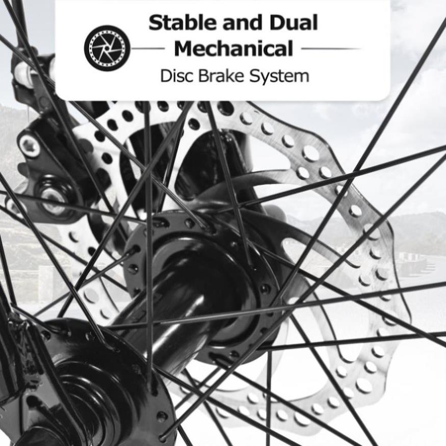 [Double Disc Double Safety]- fat tire bikes feature a dual disc brake system. Both front and rear are equipped with mechanical disc brakes, which can greatly reduce the braking distance and ensure that you can stop immediately in case of emergency.