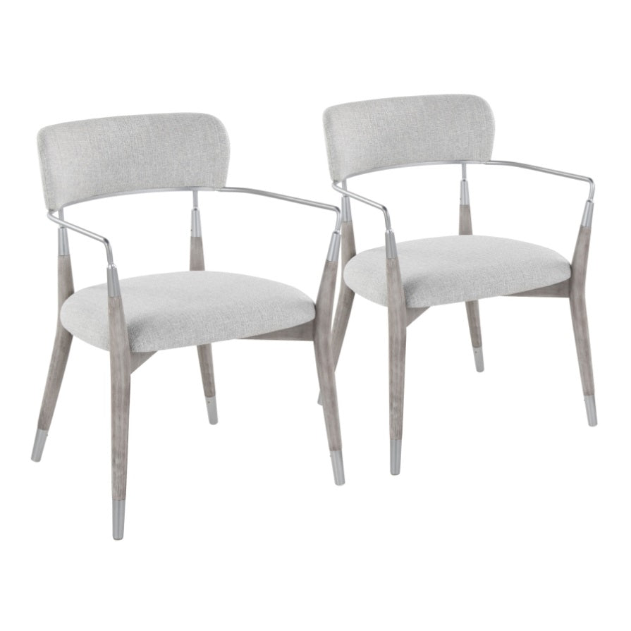 The perfect combination of modern and contemporary, the Savannah Chair by LumiSource is a must-have. With a mix of grey brushed wood, stylish fabric upholstery, and silver accents the Savannah Chair creates a fashion-forward style like no other. Sold in sets of two the Savannah is perfect for any dining area or extra seating.
