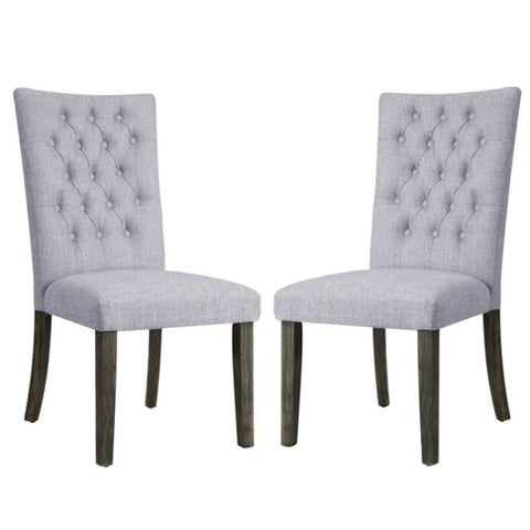 Set of 2 Gray Linen Upholstered Side Chairs, Gray Oak Finish B016P314467