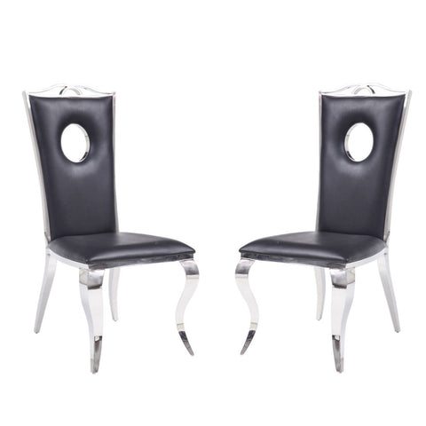Set of 2 Side Chairs with PU Padded Seat and Back, Black and Chrome B016P315212