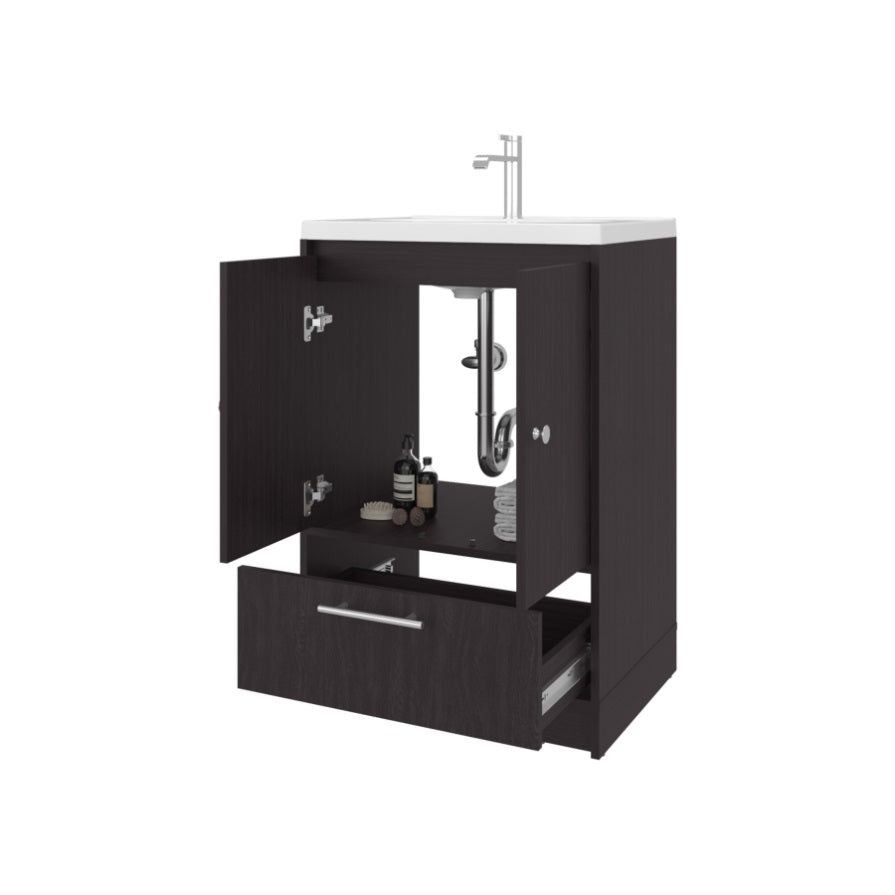 Sinclair Freestanding Bathroom Vanity with Sink, Two Doors and Bottom Drawer, Wengue B128P314809
