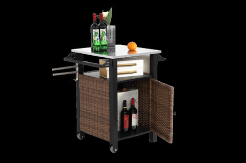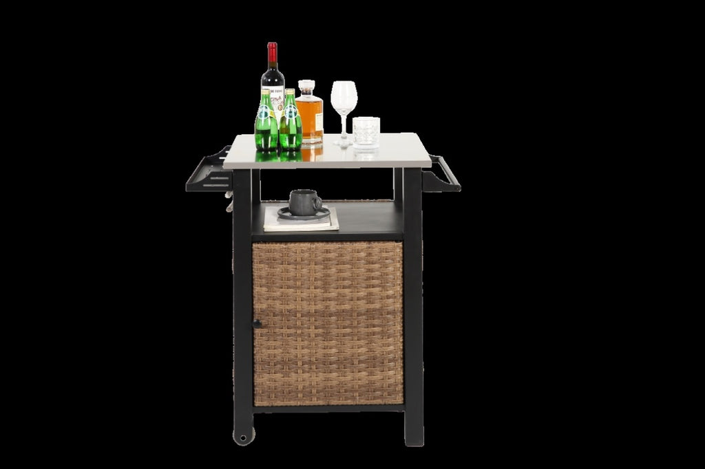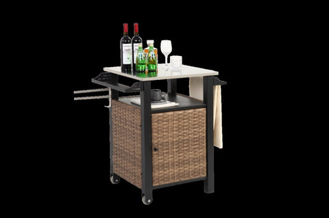 Single door bar cart,Outdoor Kitchen Wicker Island Rolling Cart & Storage Cabinet