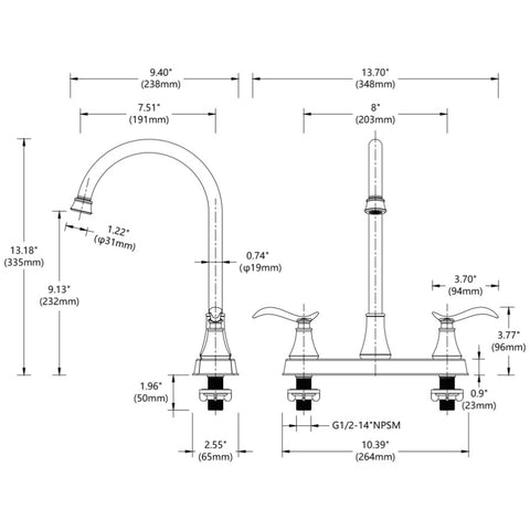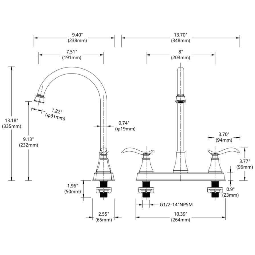 Package Dimensions ‎17.44 x 13.27 x 3.5 inches Size ‎8 Inches 2 Handles Kitchen Faucet Special Feature ‎360 DEGREE SWIVEL