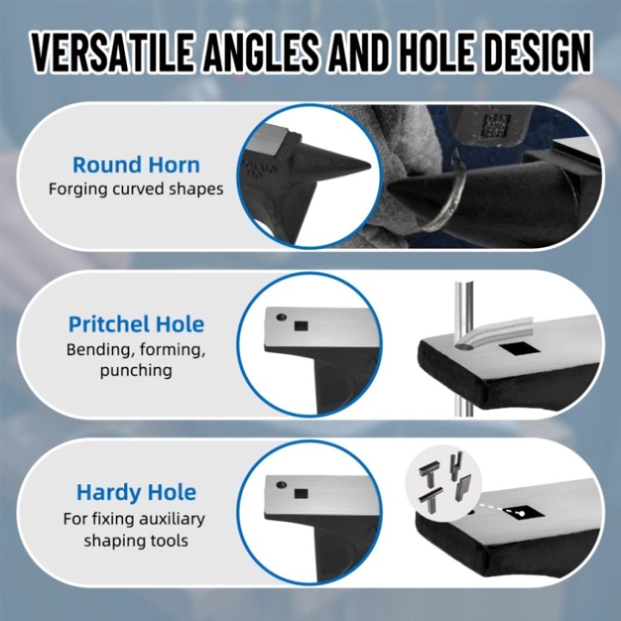 Versatile and Smooth Holes: The round holes are suitable for smooth bending and shaping, while the square holes are perfect for fitting, punching, and bending. The blacksmith anvil can be clamped or bolted onto the workbench to keep it stable and perform excellently. The unpainted surface ensures no contamination of workpieces.