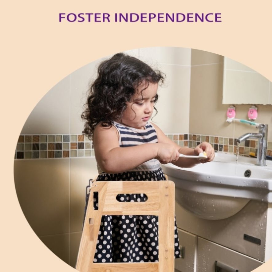 This toddler step stool can help you develop your child's life skills. Help your child to eat independently, or wash hands, brush teeth themselves, etc.