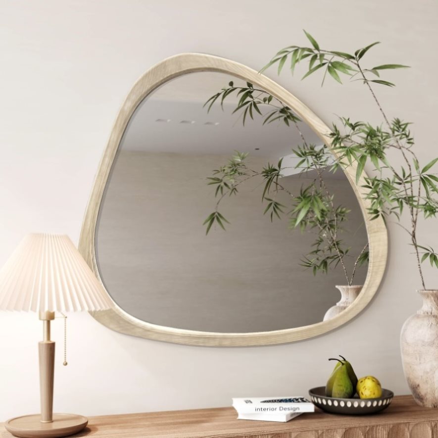 The simple appearance makes the mirror versatile and adaptable. The design of asymmetric shape gives the mirror a mid-century and stylish feel, which is able to match a variety of decoration styles and home styles. Whether placed in the bedroom, living room or bathroom, this mirror blends in perfectly, adding a simple and sophisticated aesthetic to the space.