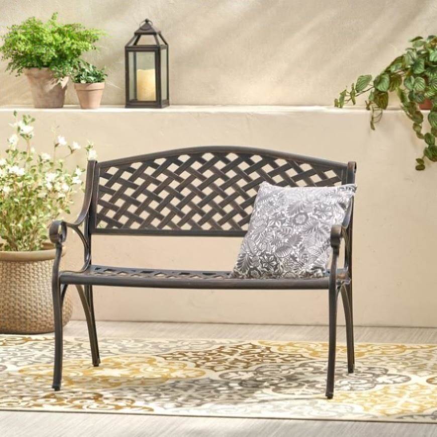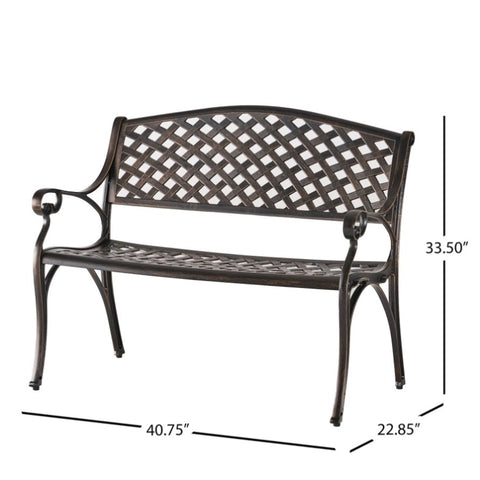 Perfect for your outdoor living space, this bench features an antique copper finish and fits up to two people.