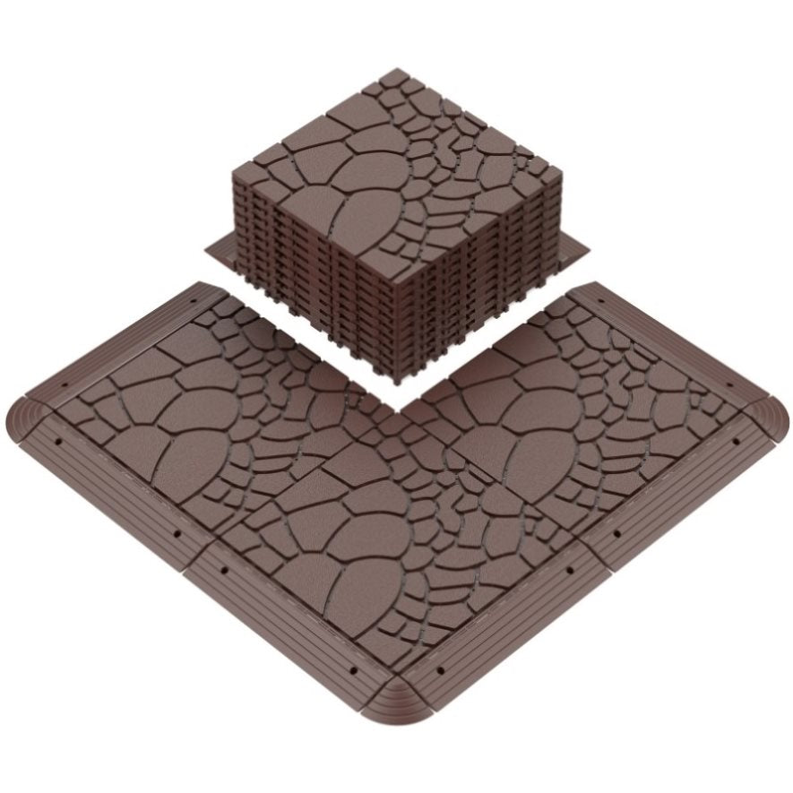 The front view of the terrace deck tiles features four compartments with three drains, while the diamond-shaped back enhances friction, anti-slip properties and durability. Say goodbye to standing water and bad smells