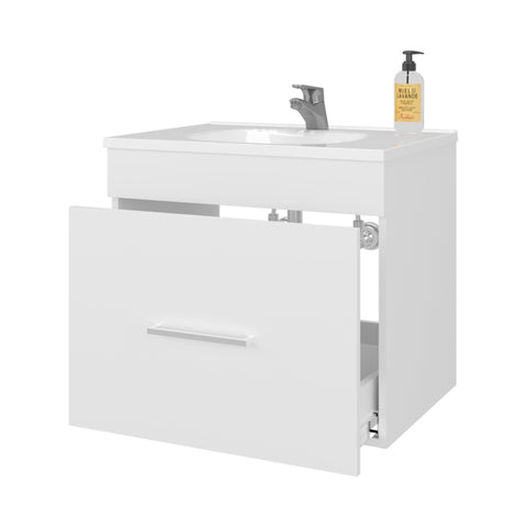 Story Floating Bathroom Vanity Set with Sink, One Drawer White B128P314808
