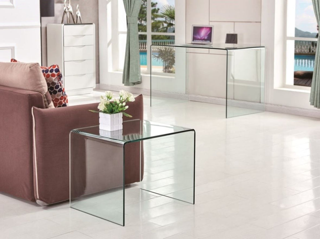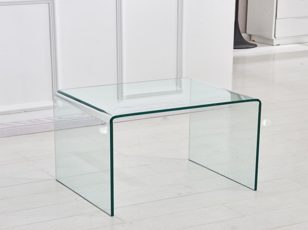 Tempered Clear Bent Glass SideTable, Transparent End Table, Sofa table