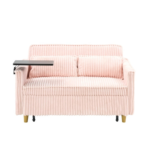 The pull-out push-in pink corduroy sofa with dual functions, equipped with a movable tabletop W1278P249022
