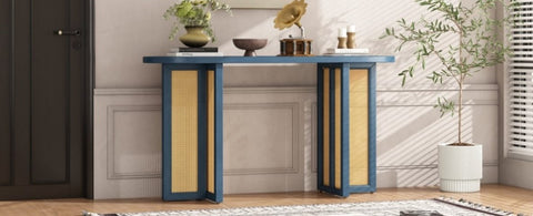TREXM Farmhouse Rattan Console Entryway, Narrow Console with Storage, Hallway N715P245743M