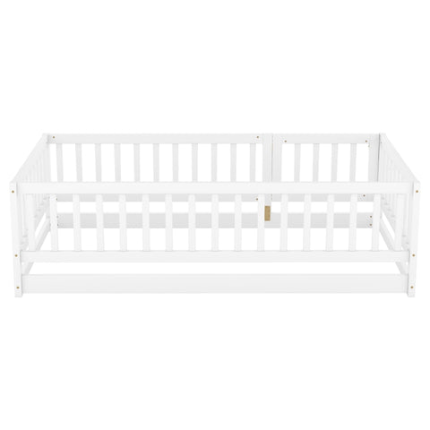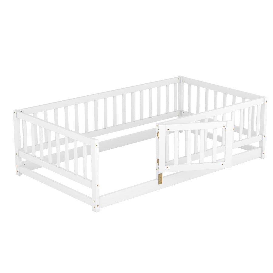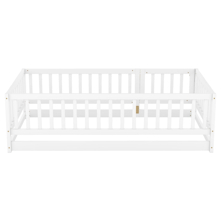 Twin Size Floor Bed, Floor Bed with Fence and Door, Kids Bed Twin Size, Wood W1820P231585
