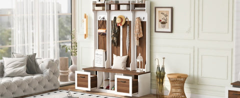 U-Can 5-in-1 Entryway Bench with Coat Rack, 7 Sturdy Hooks, 2 Spacious Drawers and Adjustable N724P235232D