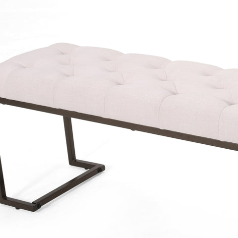 Upholstered Button Tufted Bench,Beige and Bronze N757P256383A