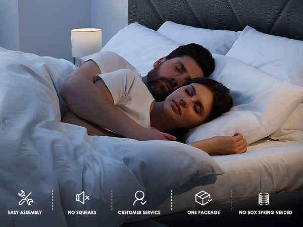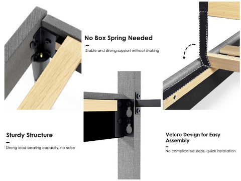 No Box Spring Needed: Designed with solid wood slats and simple assembly; mattress does not slide; suitable for memory foam or spring mattresses without a box spring