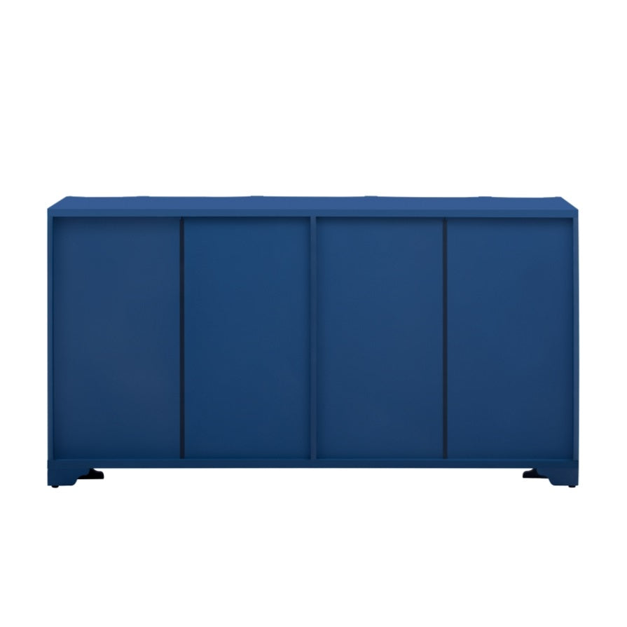 [Functional Four-Door Sideboard]:Offering ample storage with a unique four-door configuration, this sideboard combines visual artistry with practical functionality. Every door is thoughtfully designed with layered lines and angular accents to create a cohesive and refined look. Enhanced by robust support features and a premium pine veneer finish, the piece stands out as a stylish, reliable addition to contemporary interiors.