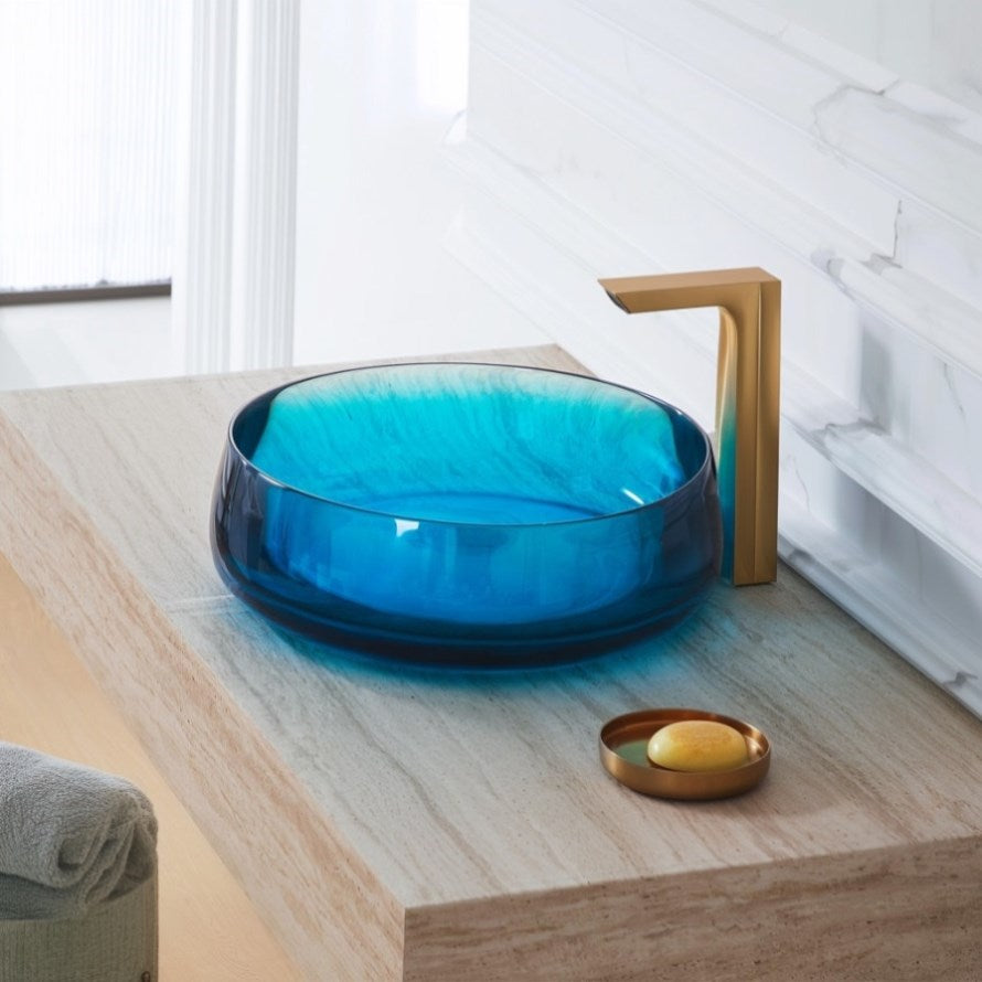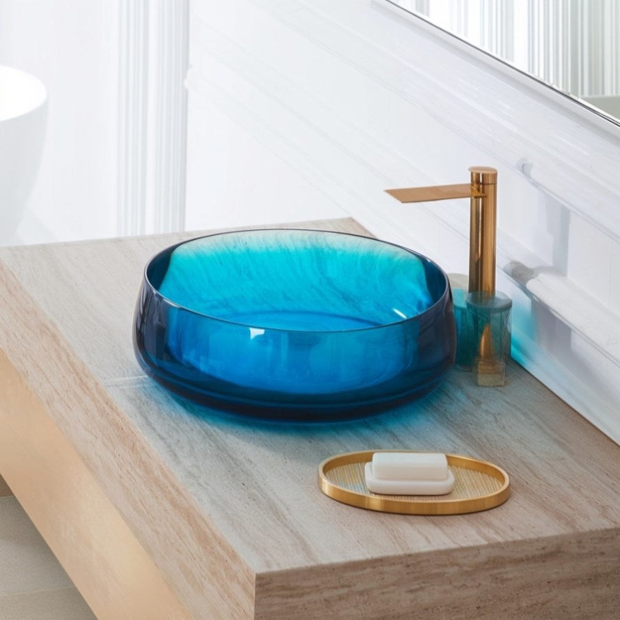 Vessel Sink Stone Resin Bathroom Sink Modern Art Sink 25C61-blue W3034P300025