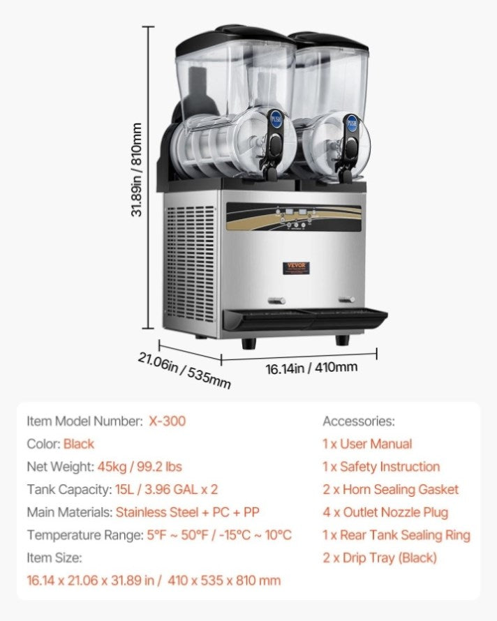 VEVOR Machine, 15Lx2 Tank Commercial Slushy Machine, Slushie Machine 1000W, Commercial T3342P309857