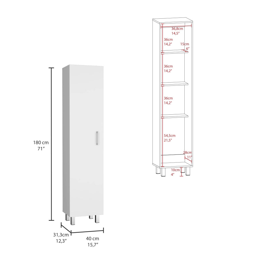 Vintro Storage Cabinet, Broom Hangers, Metal Handle -White B07092126