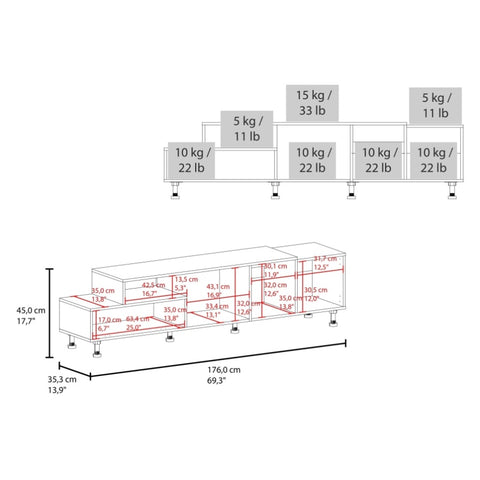 | Dimensions | 17.7 inches high x 69.3 inches wide x 13.9 inches deep |