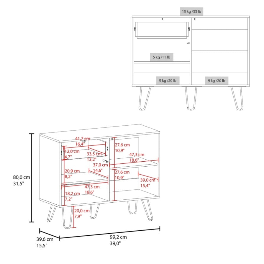 White and Natural Oak Sideboard with Hairpin Legs B062P290287