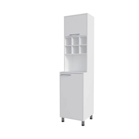 Finished in a crisp white hue, this piece brings a clean and modern touch to any space while offering a sleek rectangular design for versatility. Designed with seven spacious shelves for maximum storage and two pneumatic doors for effortless opening and closing, it ensures a well-organized and convenient setup.