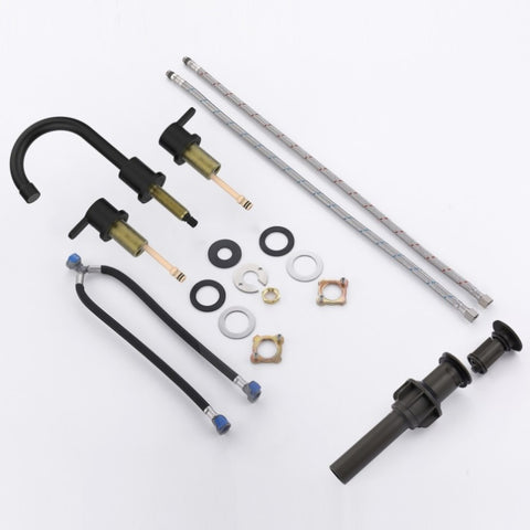 Recommended Uses For Product RV, Washroom, Laundry room, Bathroom, Public Restrooms Included Components Aerator Installation Method Centerset Flow Rate 1.2 Gallons Per Minute Valve Type Cartridge Valve Handle Lever Placement Center Is Electric No Hole Count 3 Special Features Water Saving System, 360 Swivel, Lead Free Handle Type Lever Mount Type Deck Mount Number Of Handles 2 Spout Reach 5.11 Inches Spout Height 8.26 Inches Style Modern Spout Design High Arch Gooseneck Color Matte Black Material Type Stainless Steel Handle Material Metal Finish Types Matte Black