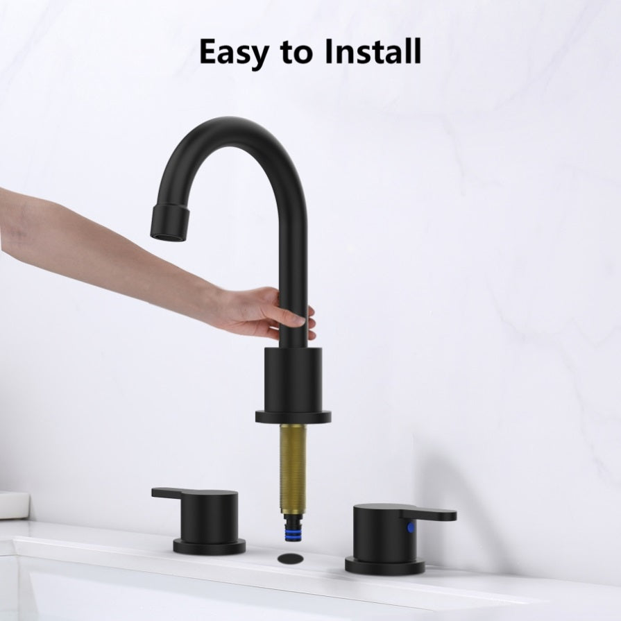 Widespread Bathroom Sink Faucet Matte Black 2 Handle 8 inch Lavatory Faucet 3 Hole 360° Swivel Spout T3177P277511