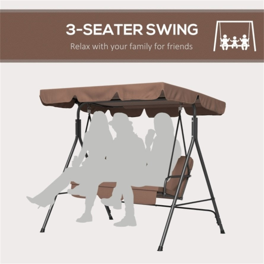 3-Seat Outdoor Patio Swing Chair-Brown 69665879
