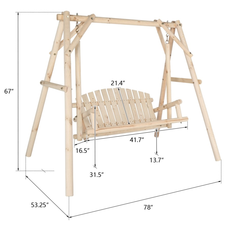 6.5ft Hardwood Patio Garden Outdoor Porch Swing with Stand, Rustic Loveseat Swing Chair for 2 88302644