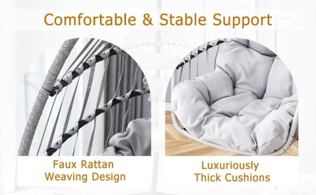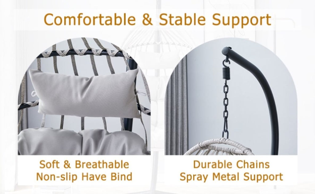 1. Ultra-Stable & Safe DesignEngineered with heavy-duty steel frames and a non-slip octopus base, this hanging chair is rigorously tested to hold up to 300 lbs (136 kg). Perfect for relaxing solo—whether you're tall or petite—with total peace of mind!