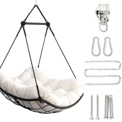 DELUXE SWING CHAIR: Includes installation tool and hanging kit. Can be mounted on a hammock chair frame, ceiling, or hung from a tree or any sturdy beam. Suitable for deck, lawn, garden, porch, balcony, poolside, outdoor, indoor.