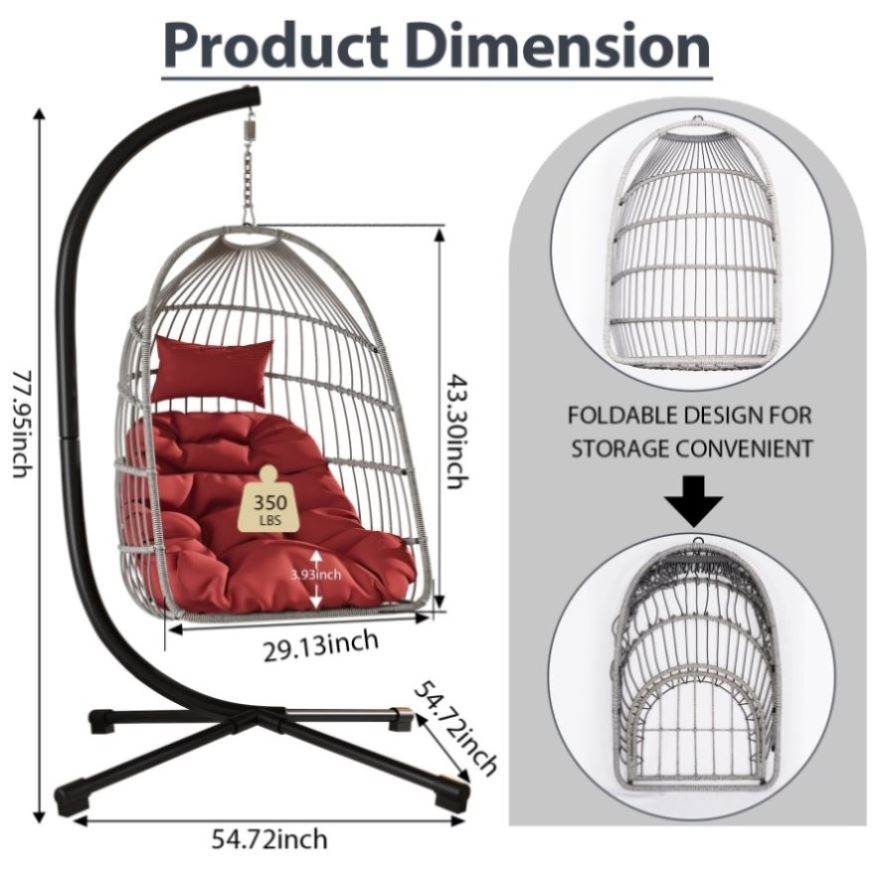 The sturdy suspension chain can hold up to 350 lbs and also easily adjust the height to suit your needs. It adopts a compact folding design and can be used for storage or carrying out camping.