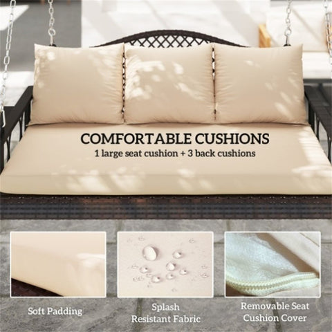 - - Powder-coated steel frame resists rust, wrapped in UV-resistant wicker