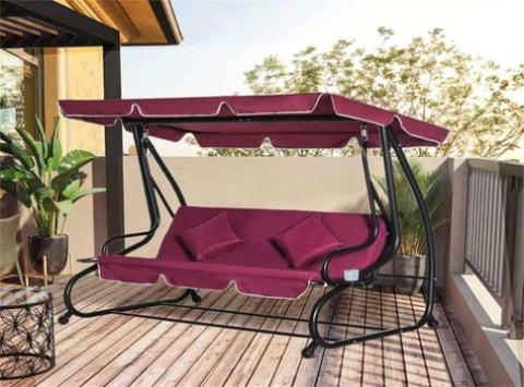 - Porch swing that seats three adults and converts into a day bed