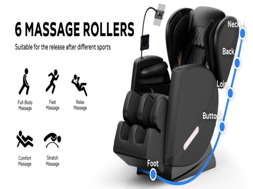 [Full-body massage] The back of the massage chair is equipped with 6 fixed rollers, which can massage your neck, back and waist, and you can choose from 5 preset automatic modes. The full body massage chair is equipped with heating functions for both the waist and legs, promoting blood circulation and relieving muscle soreness. The zero gravity massage chair is also equipped with a number of airbags, through the air bag pinch and massage shoulders, arms, calves, through the three-gear strength.