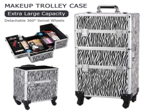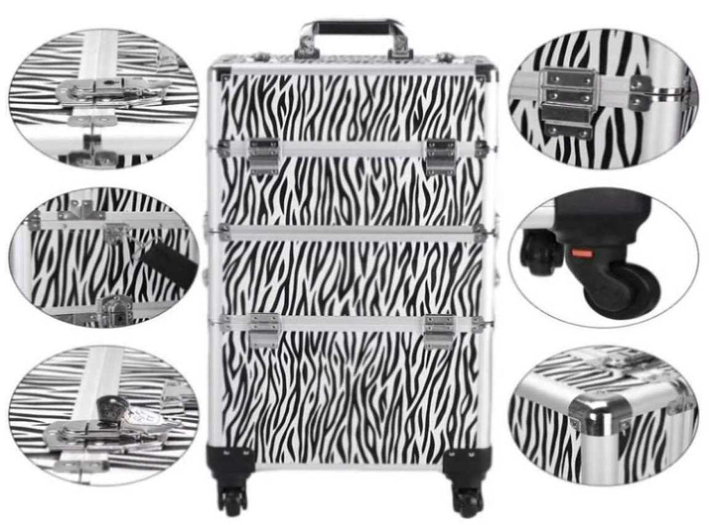3 in 1 Aluminum Cosmetic Makeup Case Tattoo Box White Zebra Print 25171058
