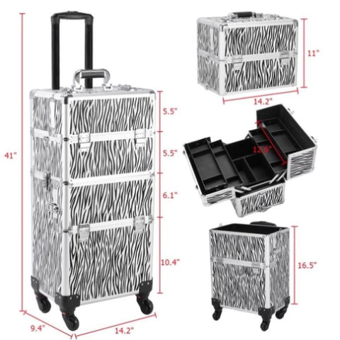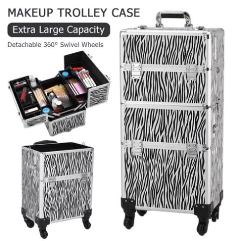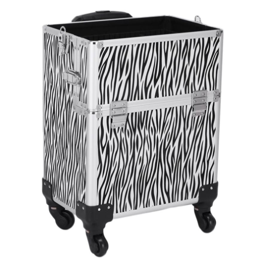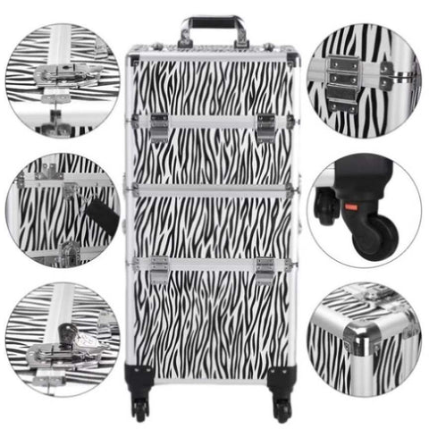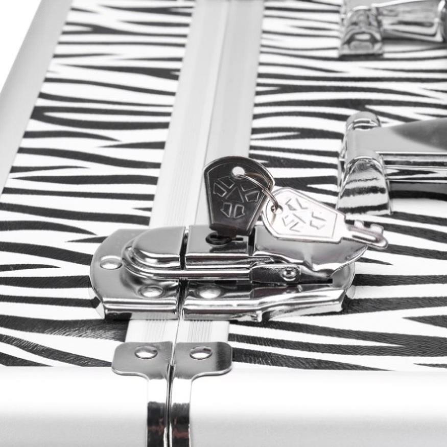 3 in 1 Aluminum Cosmetic Makeup Case Tattoo Box White Zebra Print 71795576