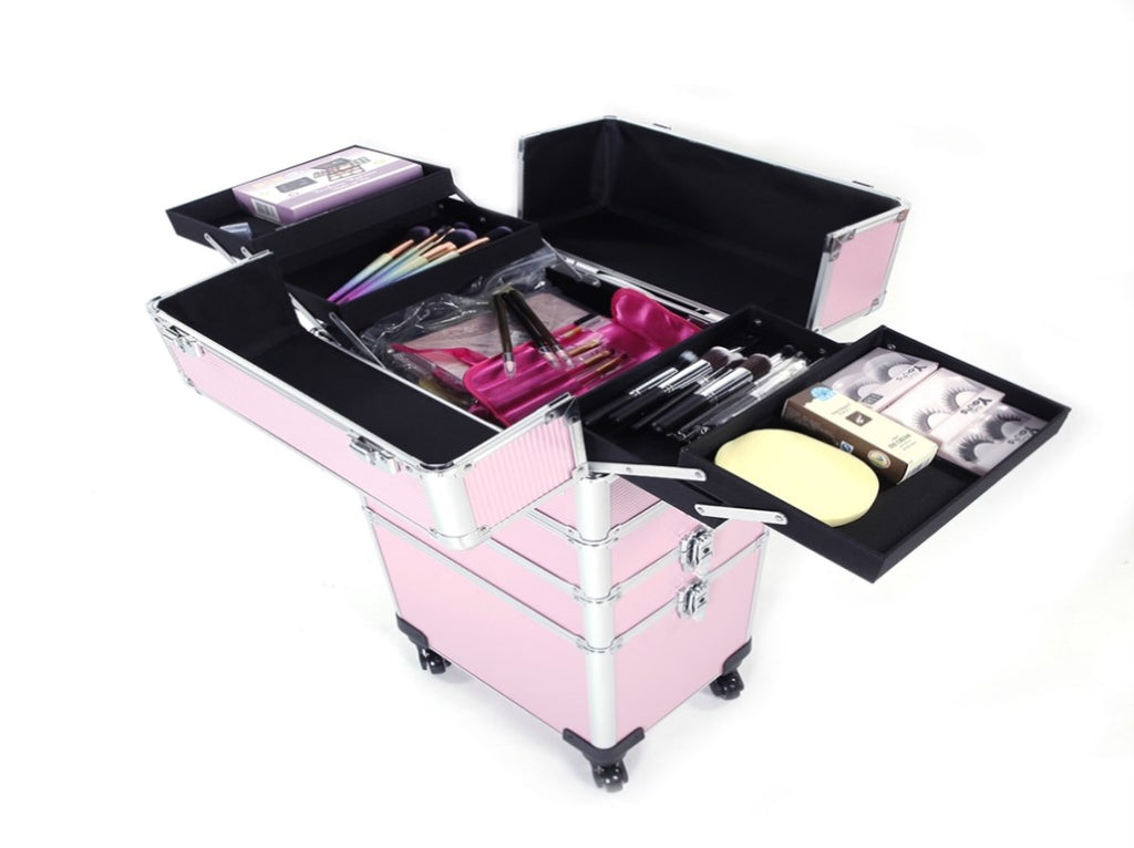 4 in 1 Aluminum Cosmetic Makeup Case Tattoo Box Pink 34306732
