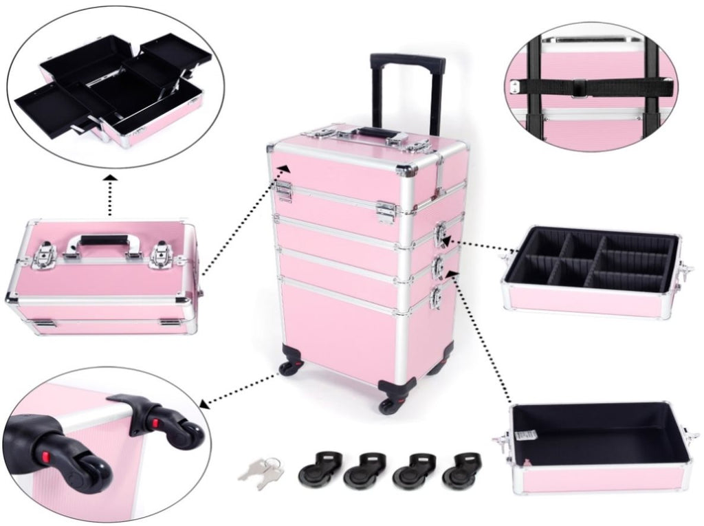 3. Overall Trolley Makeup Case with Handle and Casters Dimensions: (13.38 x 9.84 x 39.76)" / (34 x 25 x 101)cm (L x W x H)