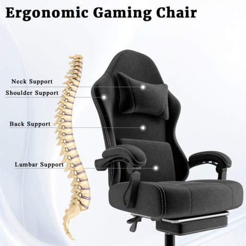 Comfortable Gaming Chair: The ventilation holes on the fabric surface of the office gaming chair ensure air circulation, delivering a cool sitting experience. The soft fabric is skin-friendly and durable, specially designed for prolonged sitting activities. This gaming chairs for adults is equipped with a backrest adjustable from 90° to 155°, along with adjustable armrests and a headrest, which fit the natural curves of the body to achieve personalized relaxation and optimal fit
