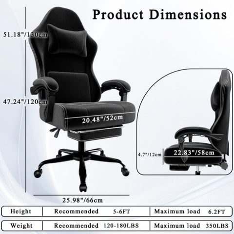 Safe and Stable: The computer gaming chair adopts a sturdy steel frame and an electroplated metal star-shaped base to provide extra stability, and it can bear a weight of up to 350 pounds. In addition, the SGS-certified gas lift ensures smooth and safe height adjustment, which can withstand long-term wear and use